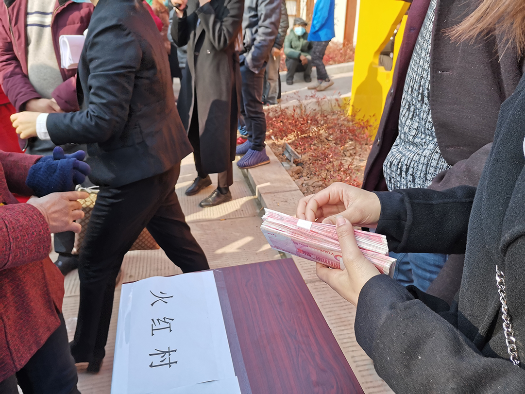 ? ? ? ? 公司為項(xiàng)目覆蓋的12村全體村民派發(fā)團(tuán)年紅包,以此感謝他們?yōu)轫?xiàng)目所做的貢獻(xiàn),送上新年里的美好祝福。