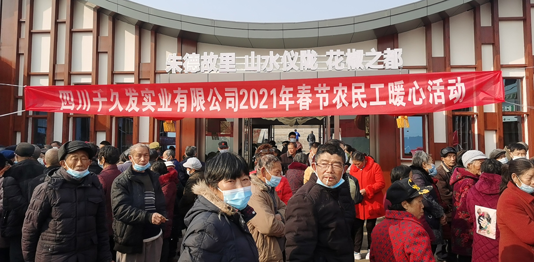 ? ? ? ? ?提到王安石的這首《元日》大家都會(huì)自然而然的想到春節(jié);春節(jié)俗稱“年節(jié)”,是中華民族最隆重的傳統(tǒng)佳節(jié)?!蔼?dú)在異鄉(xiāng)為異客,每逢佳節(jié)倍思親”,為慶賀新春佳節(jié)即將來(lái)臨之季,2021年2月7日(農(nóng)歷臘月二十六)四川千久發(fā)實(shí)業(yè)有限公司在花椒基地產(chǎn)業(yè)博覽園舉行了以“關(guān)愛(ài)農(nóng)民工 ? 暖心過(guò)大年”為主題的的新年團(tuán)拜會(huì)。大家歡聚一堂,暢敘友情,回首過(guò)去,展望未來(lái),共圖發(fā)展,共迎新春。
