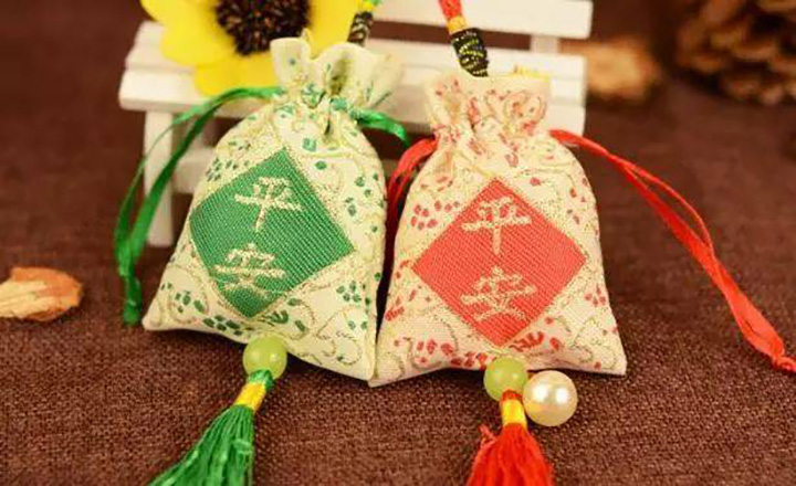 在端午節(jié)民間還延續(xù)著佩香囊的傳統(tǒng),傳說有避邪驅瘟之意(古時人們以為自己發(fā)病是因為妖魔鬼怪上身),實際是用于襟頭點綴裝飾。香囊內(nèi)有朱砂、雄黃、香藥等一些具有藥效功能之物,外包以絲布,清香四溢,再以五色絲線弦扣成索,作各種不同形狀,結成一串,形形色色,小巧可愛。其實我們也可以用花椒制作一個屬于自己的花椒香囊。走到哪里都是椒香四溢,花椒驅蟲、也可以宜人脾胃。