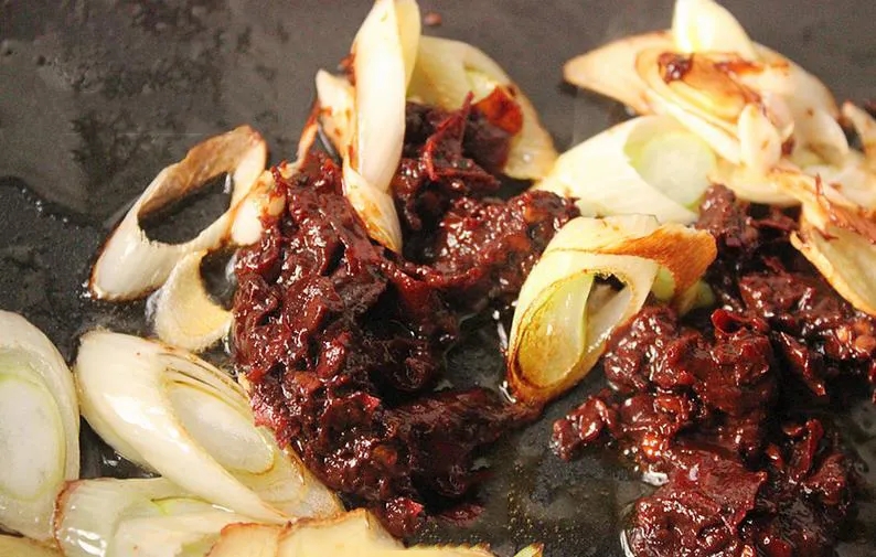 4>鍋中加底油爆香蔥姜,然后加一大勺郫縣豆瓣炒香。